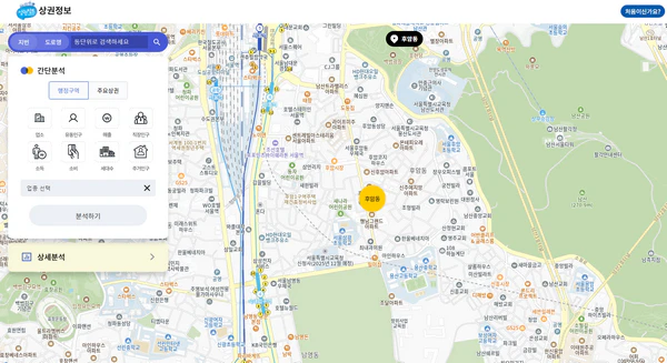 - 우리마을가게 상권 분석 서비스: 서울시에서 운영하며 행정동 단위로 정보를 제공합니다. 해당 지역 점포 수나 매출 규모 등 다양한 데이터가 포함되어 있어요.